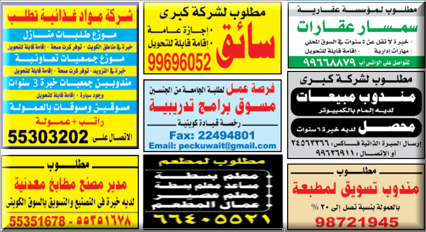 وظائف خالية في جميع التخصصات من وسيط الكويت بتاريخ الثلاثاء20 10 2015