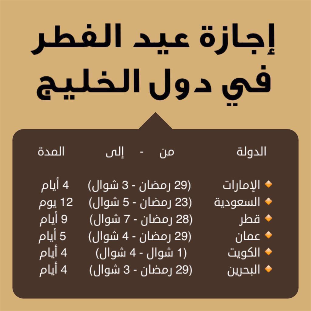 موظف في بريد الكويت On Twitter اجازات العيد في دول الخليج الكويت السعودية البحرين قطر الامارات عمان Http T Co 5f8alrxe3y