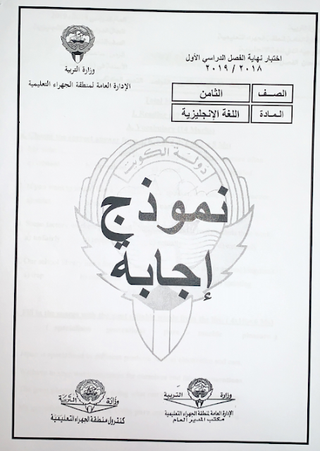 اجابة امتحان اللغة الانجليزية للصف الثامن نهاية الفترة الاولي منطقة الاحمدي التعليمية 2019 2019 الكويت التعليمية