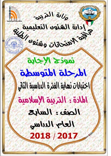 نموذج اختبار مهم ومفيد في مادة التربية الاسلامية الصف السابع تربية اسلامية الفصل الثاني ملفات الكويت التعليمية