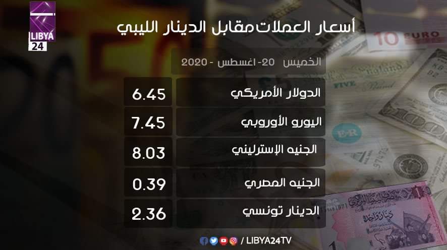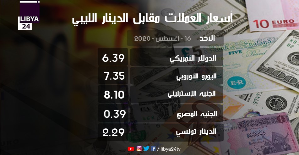 ليبيا 24 أسعار العملات الأجنبية والعربية مقابل الدينار الليبي