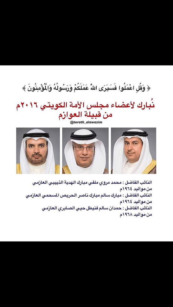 محمد بن جليدان On Twitter ابارك لأعضاء مجلس الأمة الكويتي ٢٠١٦ من قبيلة العوازم حمدان فنيطل محمد الهدية مبارك الحريص مجلس الامة 2016