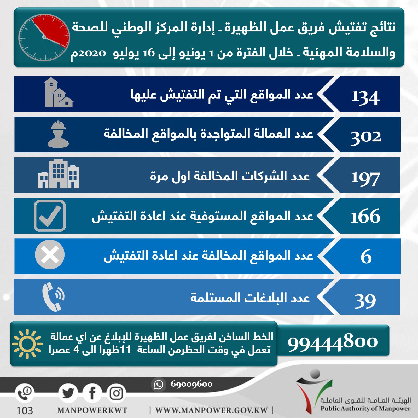 الهيئة العامة للقوى العاملة Auf Twitter نتائج تفتيش فريق عمل الظهيرة ـ إدارة المركز الوطني للصحة والسلامة المهنية ـ خلال الفترة من 1 يونيو إلى 16 يوليو 2020 م Https T Co T6ytmuxid4