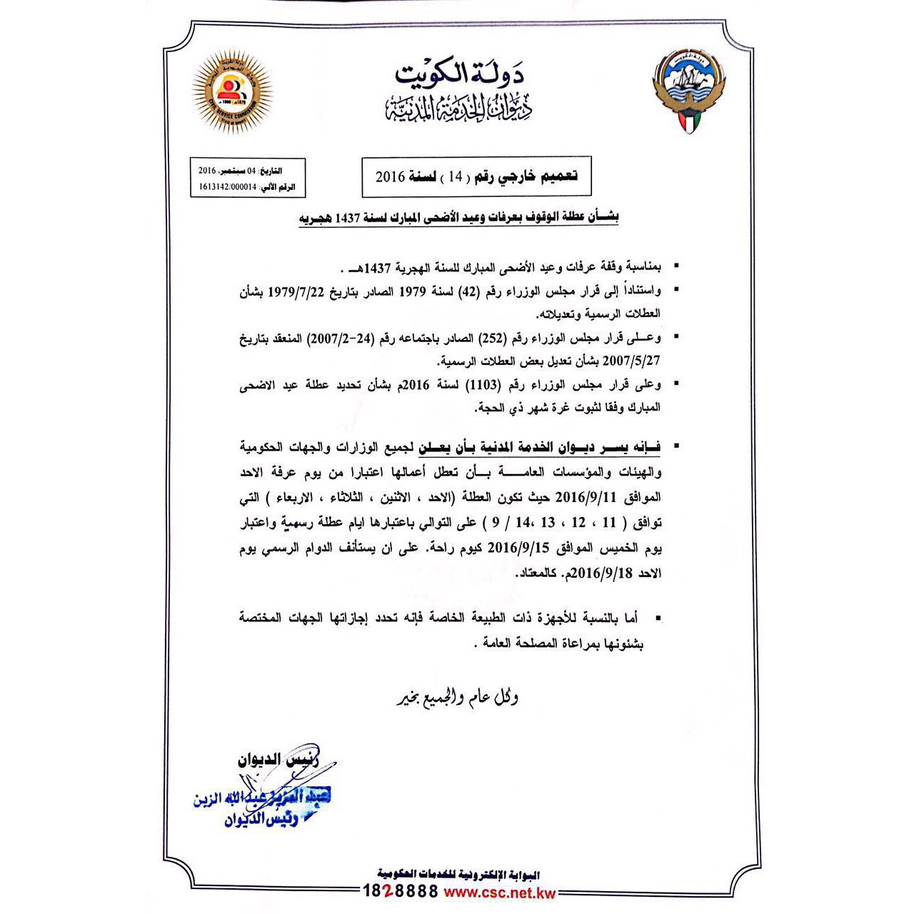 قائمة العطلات الكويتية لعام 2016 محليات الكويت