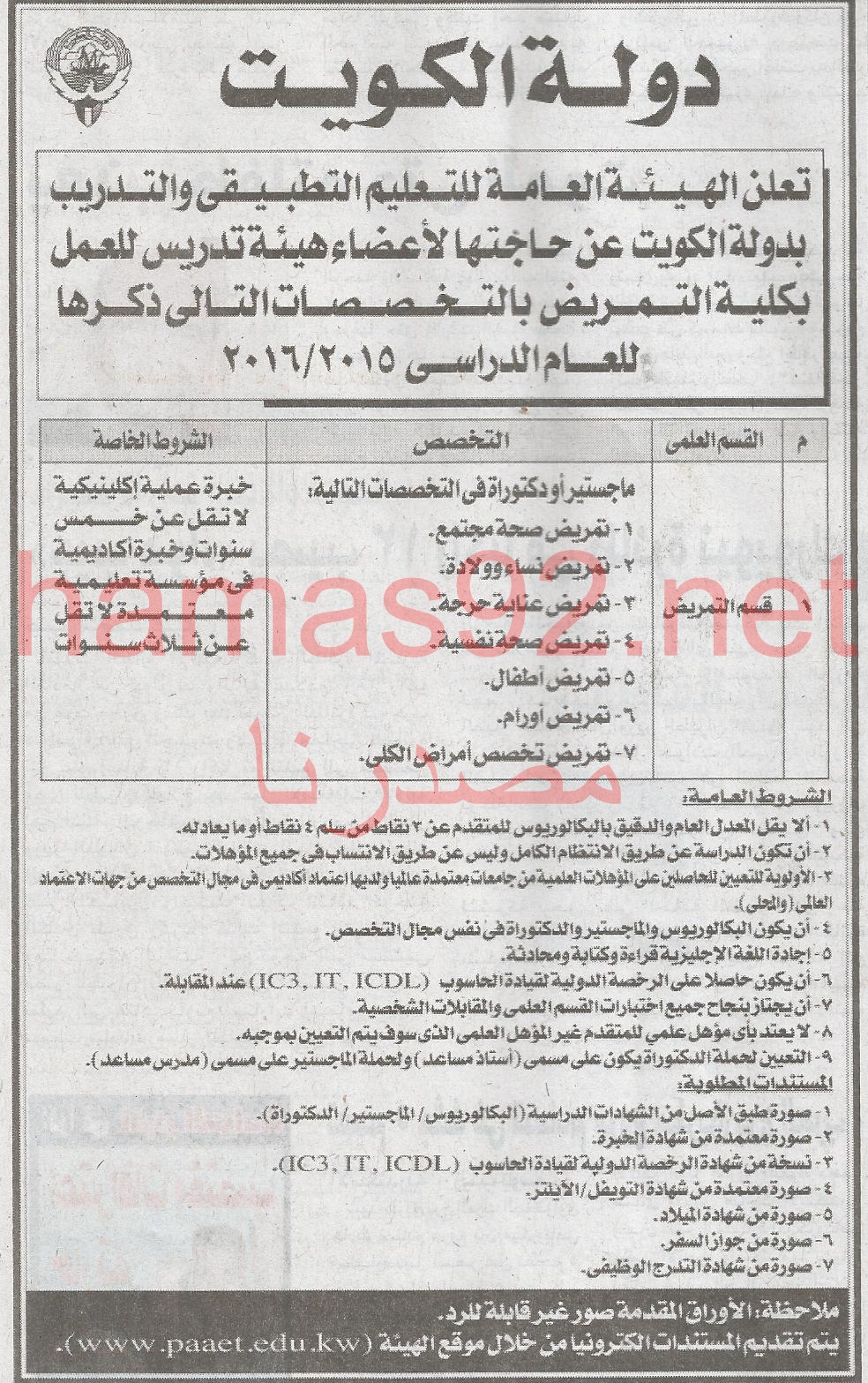 الأحد 6 9 2015 الهيئة العامة للتعليم التطبيقي والتدريب بدولة الكويت وظائف شاغرة