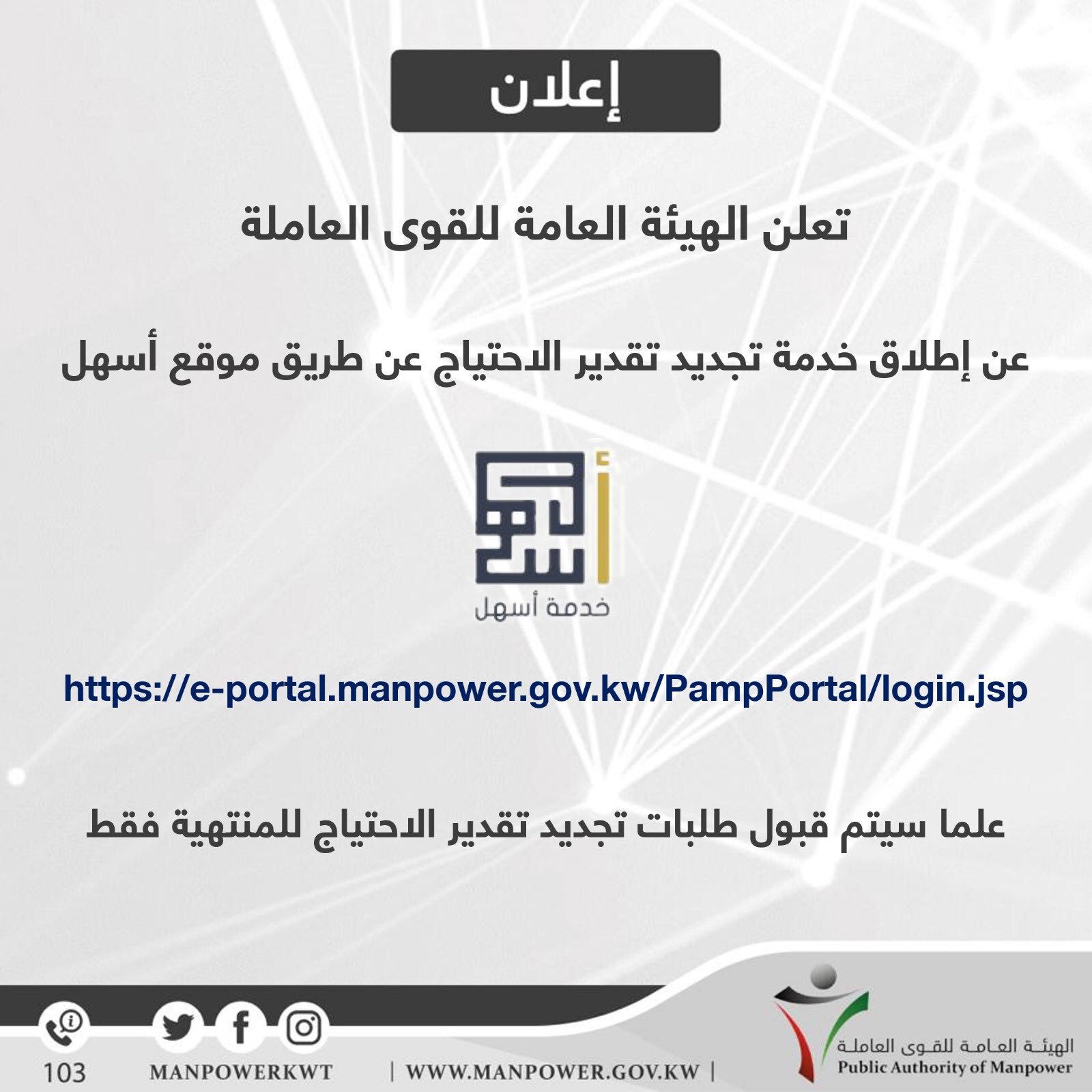 خدمة اسهل للقوى العاملة الهيئة العامة الكويت معلومة