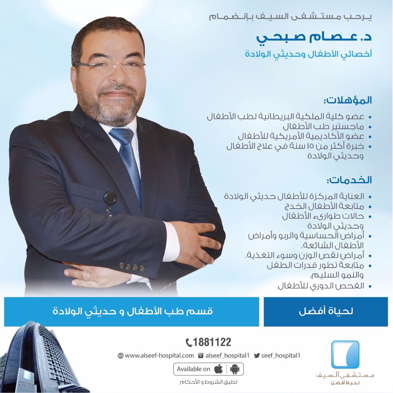 Alseef Hospital בטוויטר يرحب مستشفى السيف بإنضمام الدكتور عصام صبحي أخصائي الأطفال و حديثي الولادة للحجز 1881122