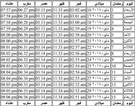 امساكية رمضان ٢٠١٨ الكويت