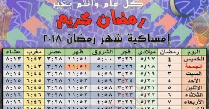 إمساكية رمضان 2018 إمساكية شهر رمضان 2018