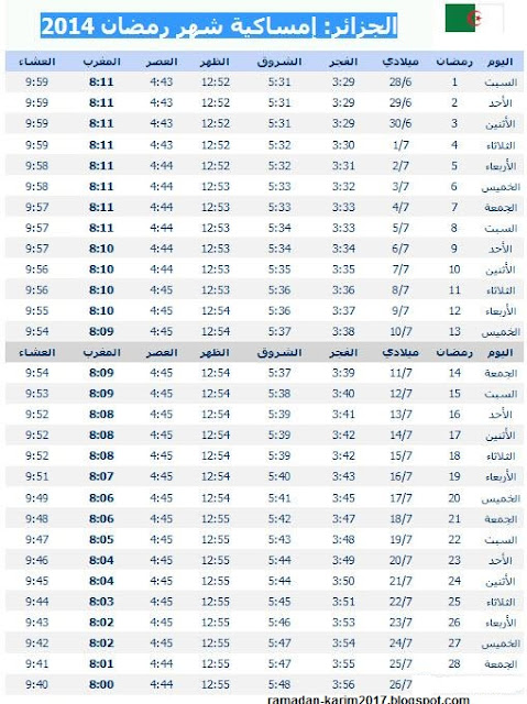 امساكية رمضان 2017 في الجزائر