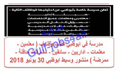 مدرسة في ابوظبي تطلب وظائف معلمين معلمات اداريين سائقين مشرفات حافلة ممرضة منشور وسيط ابوظبي 30