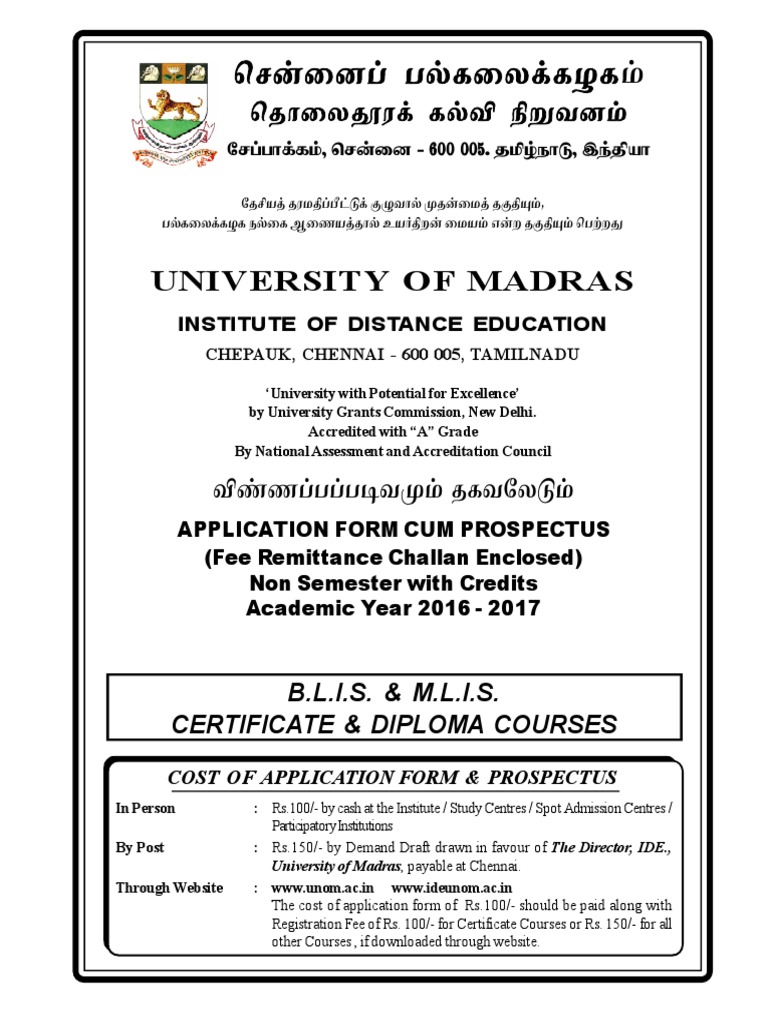 Manipal University Online Courses Madras University Distance Education Admission 2016