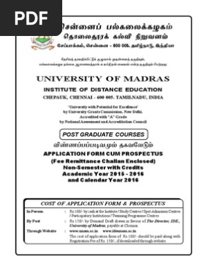 Prospectus Of Madras University Distance Education 2020 2021 Eduvark