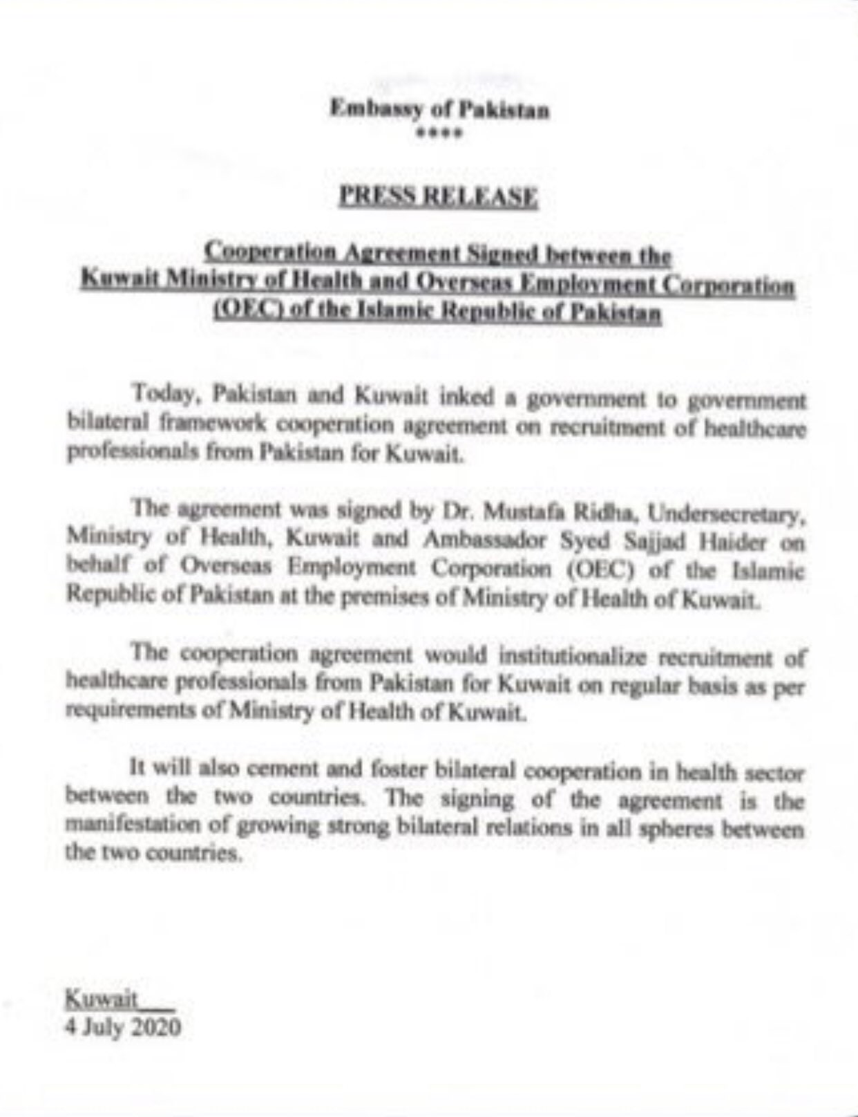 Mir Mohammad Alikhan On Twitter Kuwait Signs A Contract To Hire More Pakistani Doctors Nurses And Paramedic Staff Alhamdolillah Isolation Of Pakistan Under Process By Narendramodi P S 800 000 Indian Workers To Be
