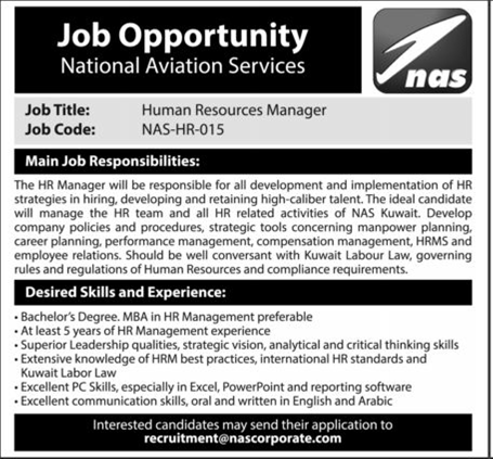 Jobs وظائف In Kuwait On Twitter National Aviation Services Nas Looking For Human Resources Manager Details In Picture Q8 Jobs Https T Co Icnawfgbn5