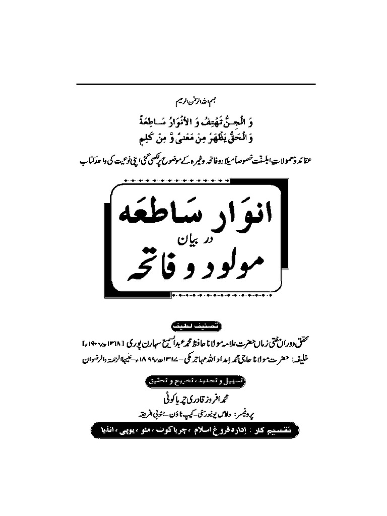 Anwar E Satia Dar Bayan E Molood O Fatiha