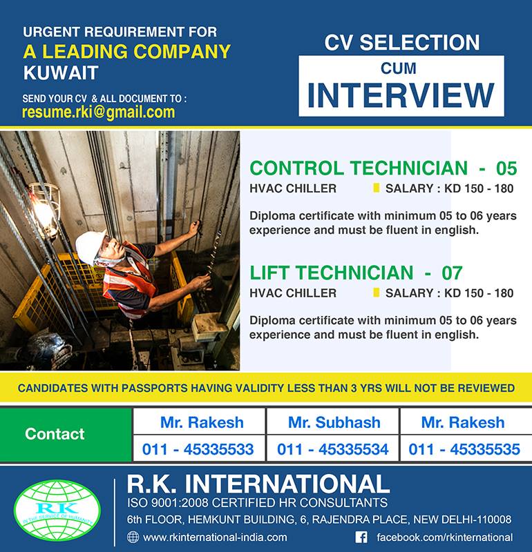 Technicians Required For Leading Company In Kuwait Gulf Jobs Work Abroad