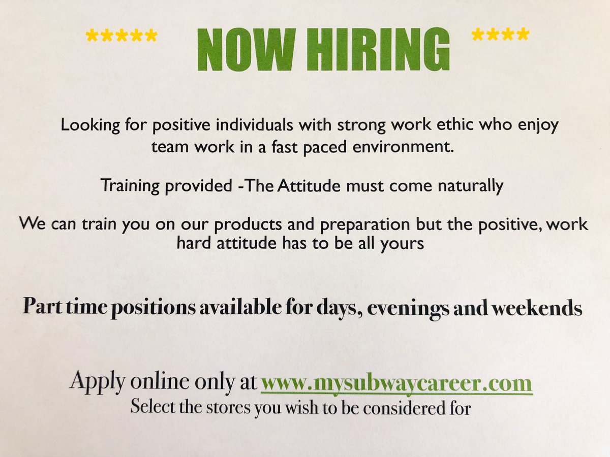 Subway Sackville Ns On Twitter Newyear New Job Now Hiring Part Time Days Evening Weekend Positions Lowersackville