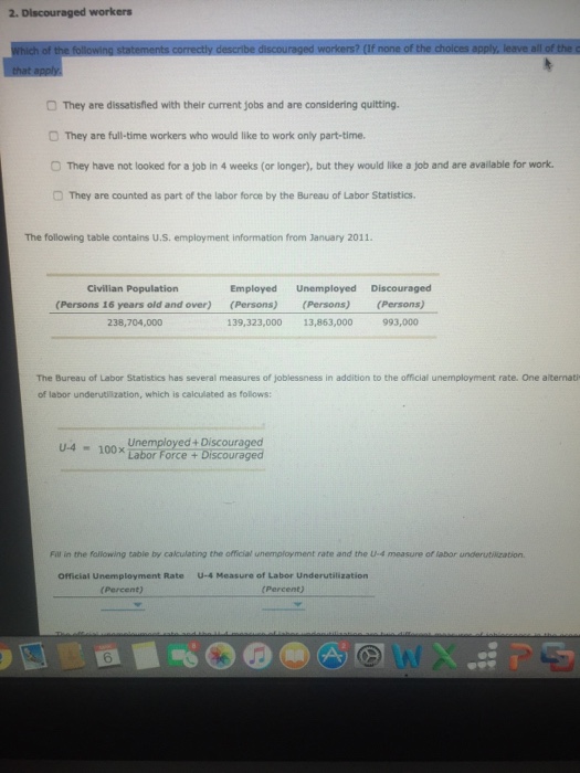 Solved 2 Discouraged Workers O They Are Dissatisfied Wit Chegg Com