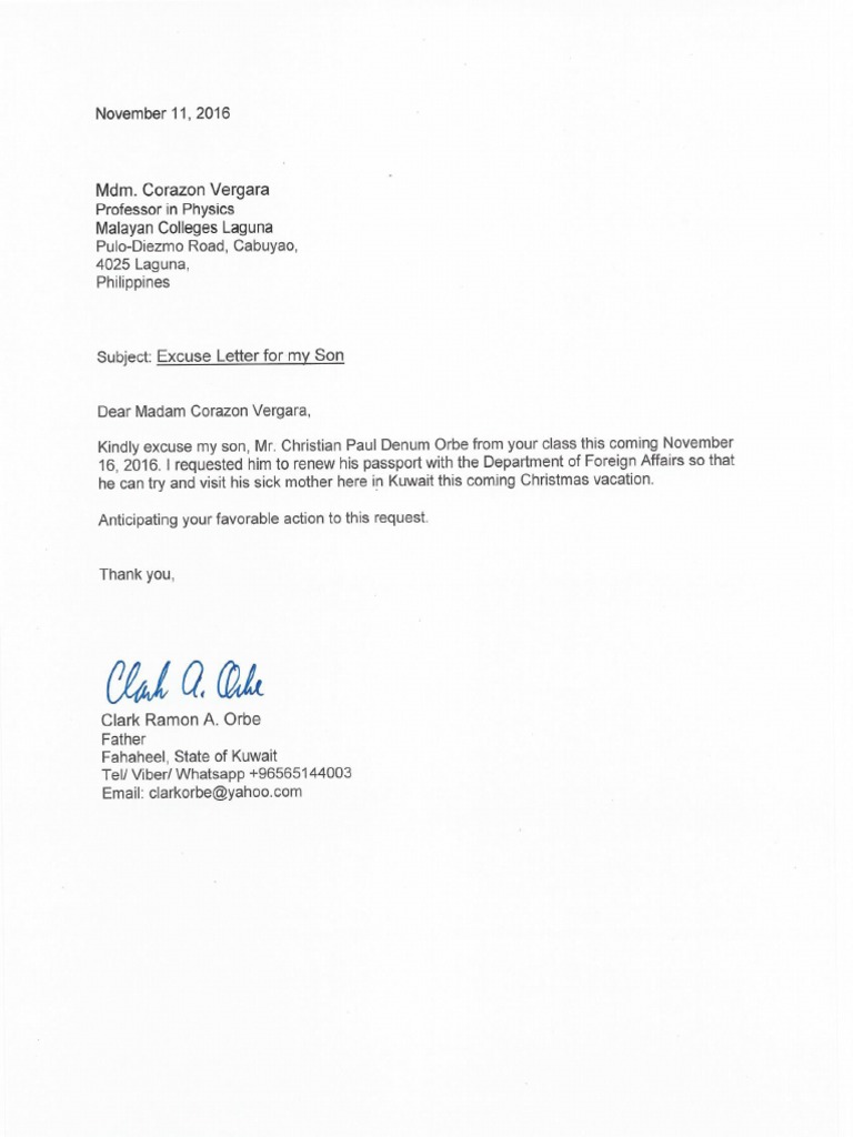 Christian Excuse Letters