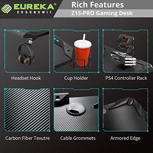 Eureka Ergonomic Z60 Gaming Desk 60 Z Shaped Large Pc Computer Gaming Desks Tables With Rgb Led Lights Controller Stand And Mouse Pad For E Sport Racing Gamer Pro Home Office Gift