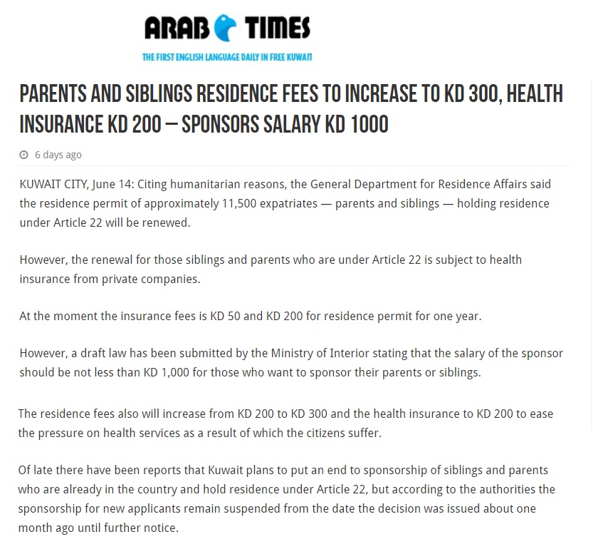 Residence Expired Before March Are Prohibited From Altering The Status Arab Times Kuwait News