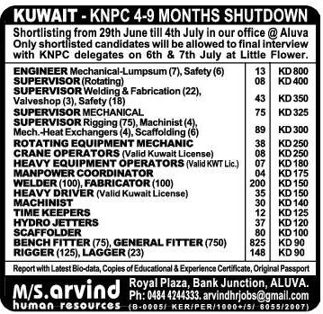 Knpc Kuwait Oil And Gas Shutdown Jobs Large Number Of Vacancies Job Inbox Gulf Walk In Interviews