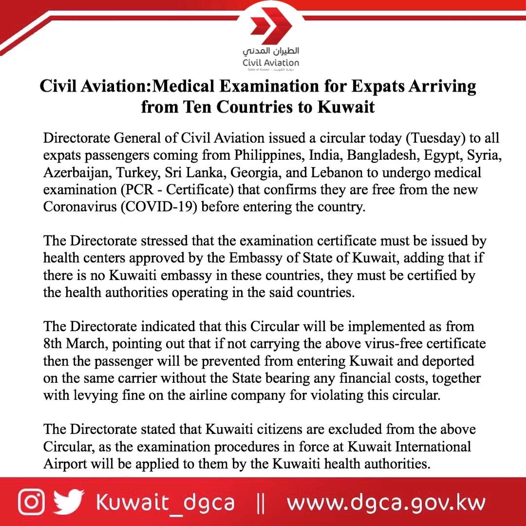 الطيران المدني On Twitter Civil Aviation Medical Examination For Expats Arriving From Ten Countries To Kuwait