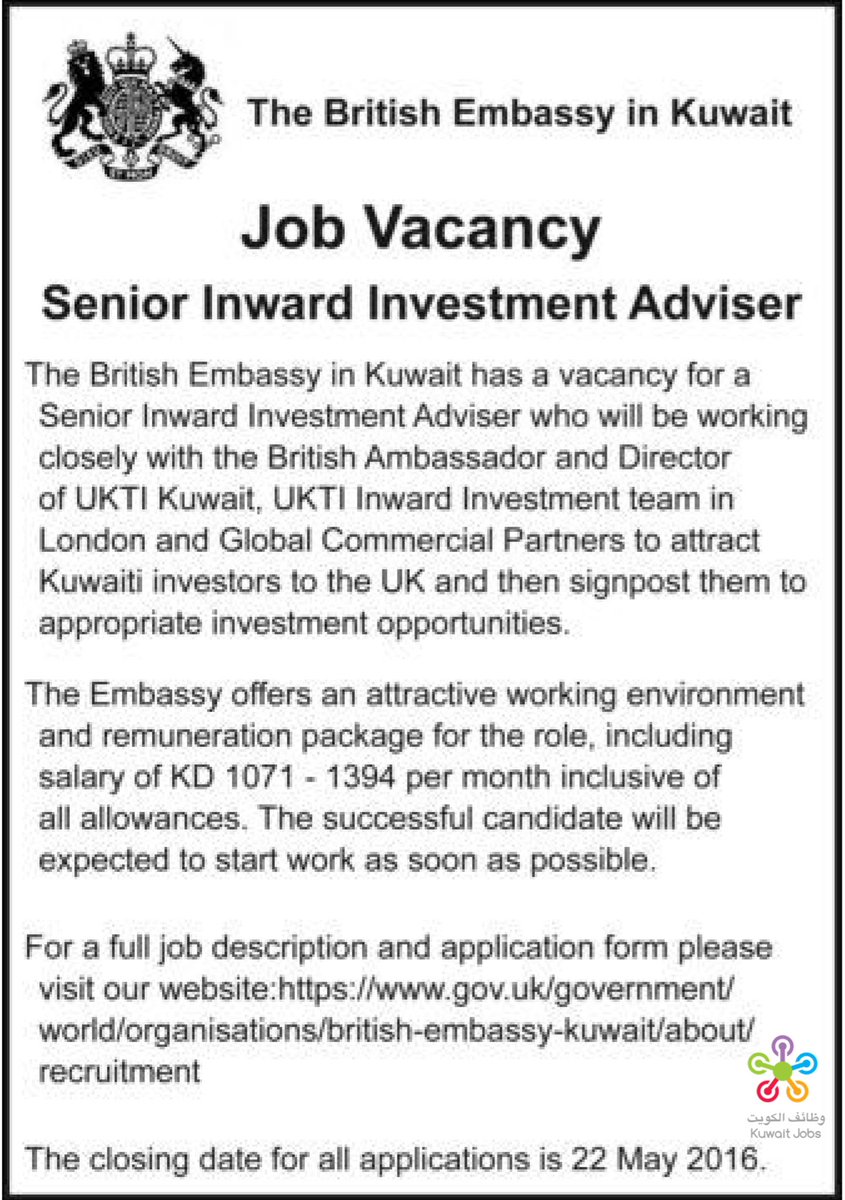 وظائف الكويت On Twitter The British Embassy In Kuwait Job Vacancy Senior Inward Investment Adviser To Apply Https T Co Hvyrfpnfyu