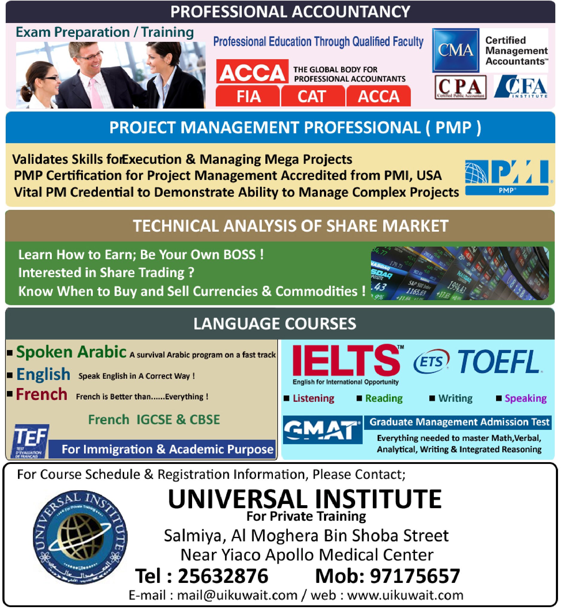 The Times Kuwait On Twitter Universal Institute Provides A Comprehensive Education Environment By Offering Training In Diverse Backgrounds Universalinstitute Salmiya Kuwait Languagecourses Pmp Projectmanagementprofessional
