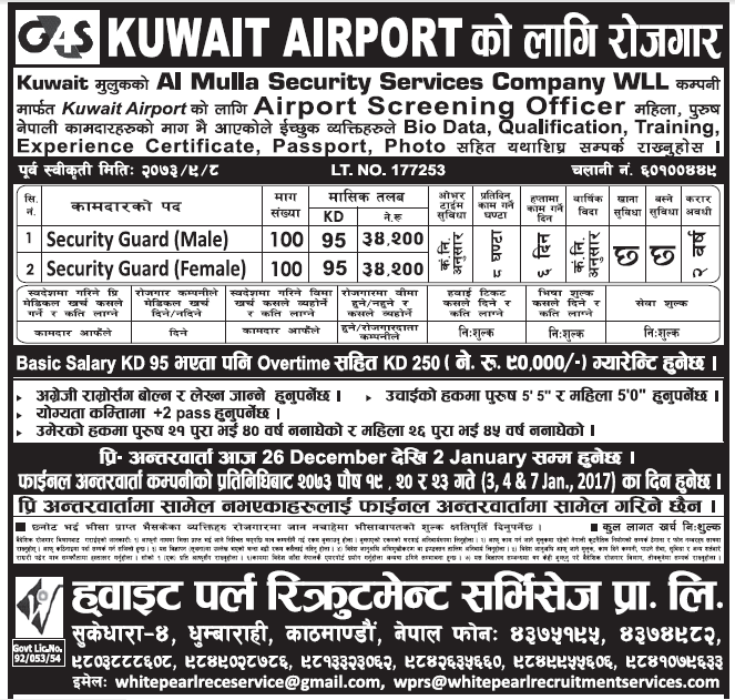 Airport Security Officer In Kuwait Gulf Job Demand Job Finder In Nepal Nepali Job Finder Portal Finds Your Match