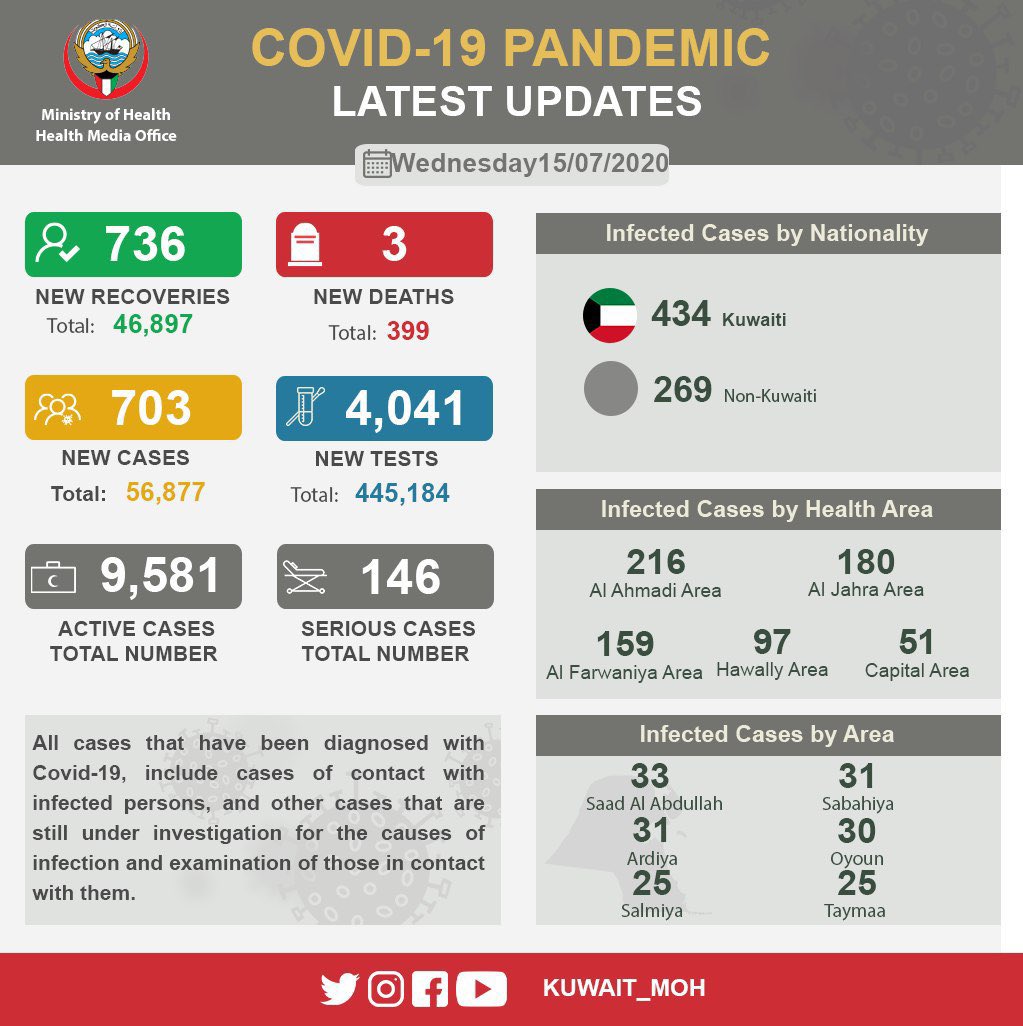 15th July 2020 Wednesday Kuwait Coronavirus Update Kchjobs Covid 19
