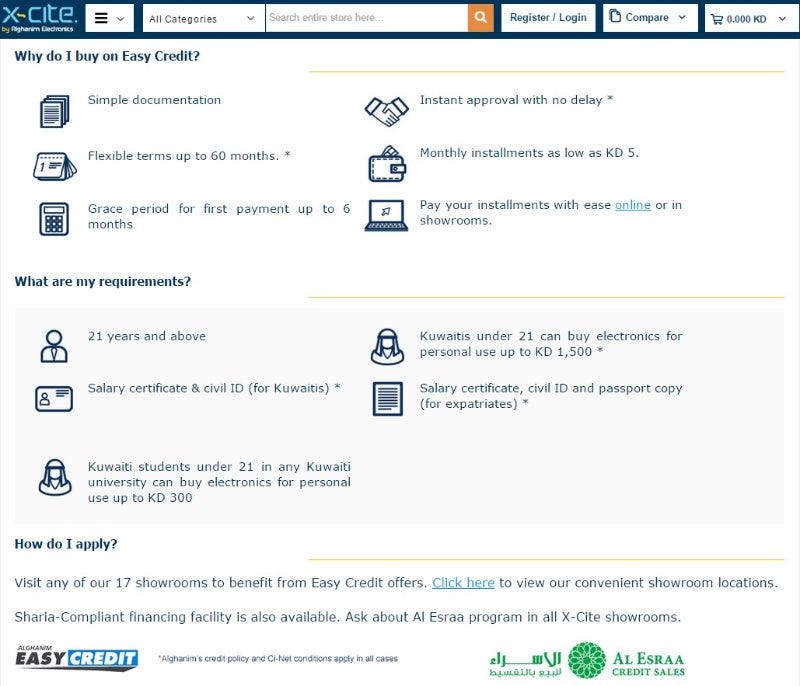 Easycredit Xcite Com At Wi Pay Alghanim Easycredit Xcite Alamana Installments Online